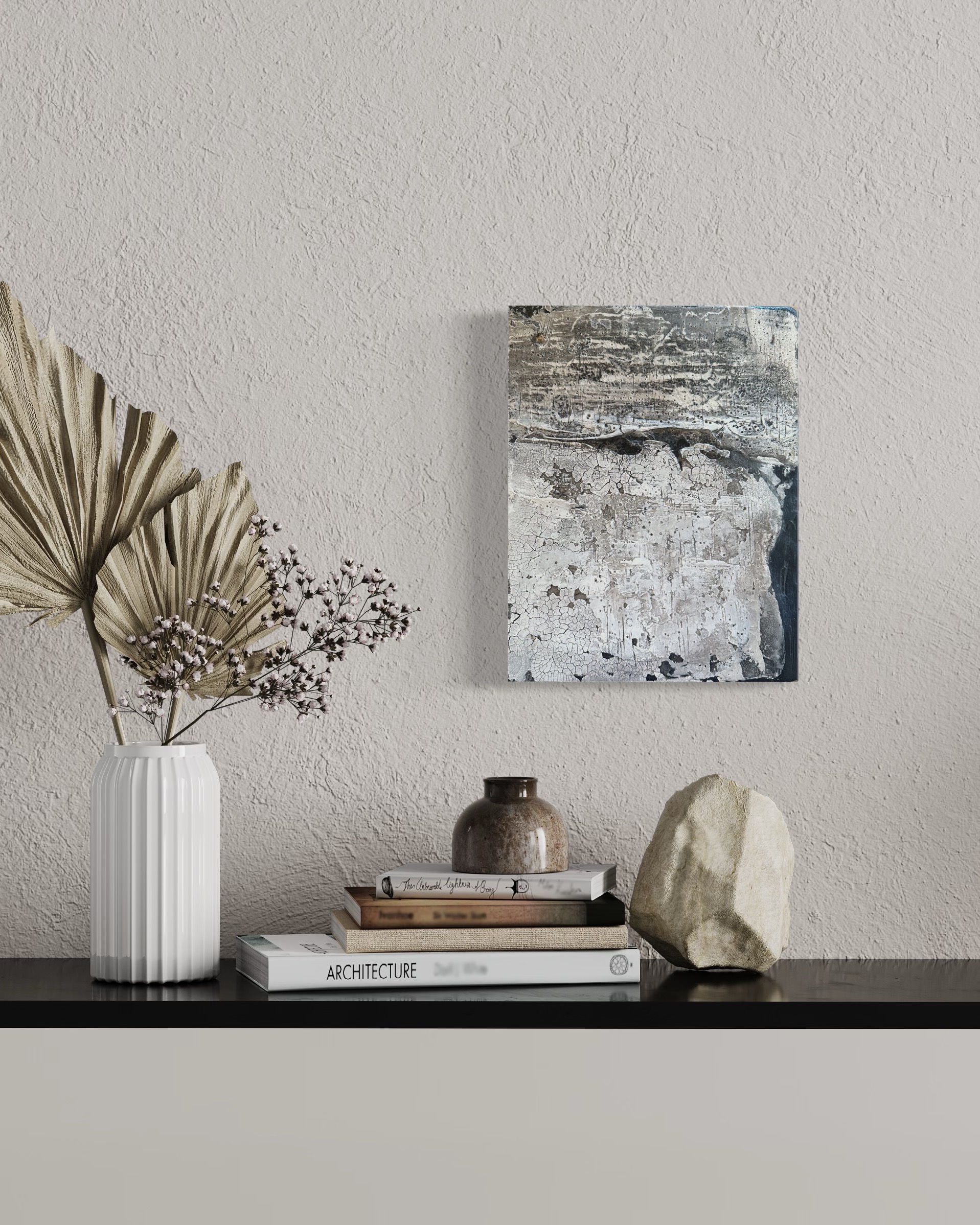 In my artwork, I’ve layered acrylic, ink, and plaster to create a textured tapestry that explores the interplay of memories and time. Abstract shapes and impressionistic strokes conjure a sense of forgotten moments fossilized in the mind’s canvas. This piece balances minimalism with emotional depth, inviting viewers to reflect on their own experiences. Its presence in a home adds a dynamic energy, resonating with the beauty of preserved history and inviting contemplation.