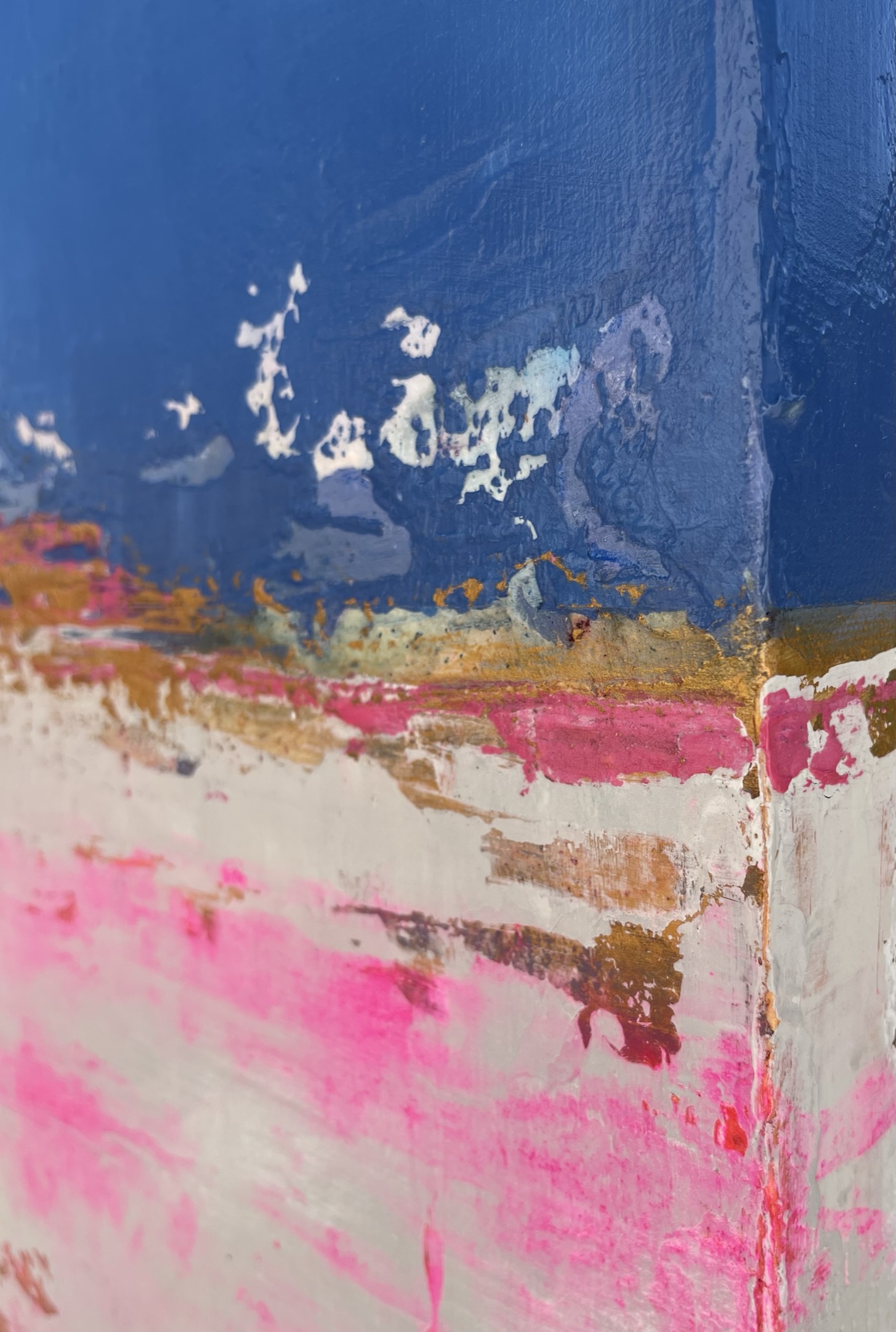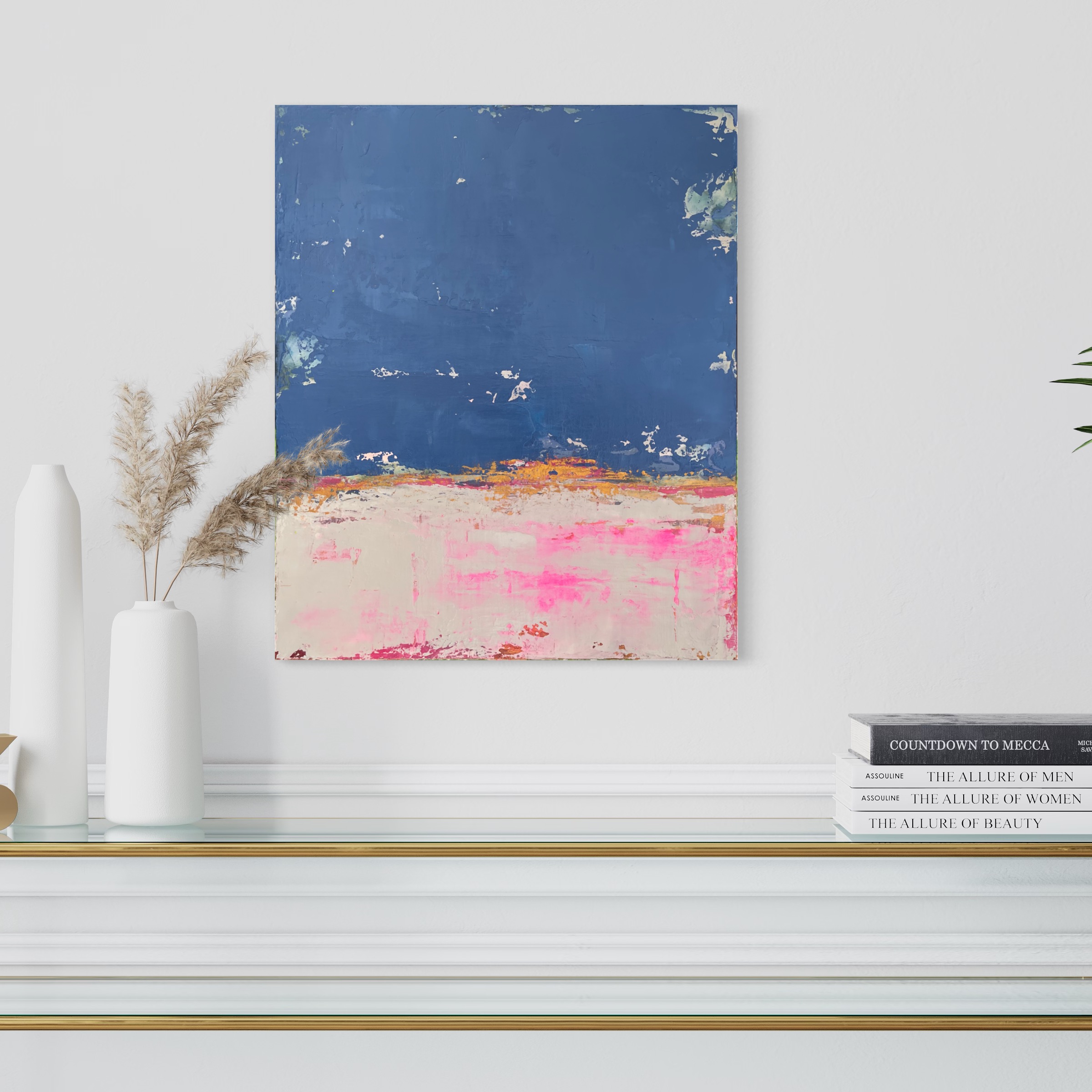 “Steel Blue and Cream” is created from the style of Color Blocking made popular by Piet Mondrian. “Mondrian valued simplicity and, as a result, experimented with how far he could simplify his work, maximizing simplicity while still maintaining recognizable, although abstract, geometric shapes.”